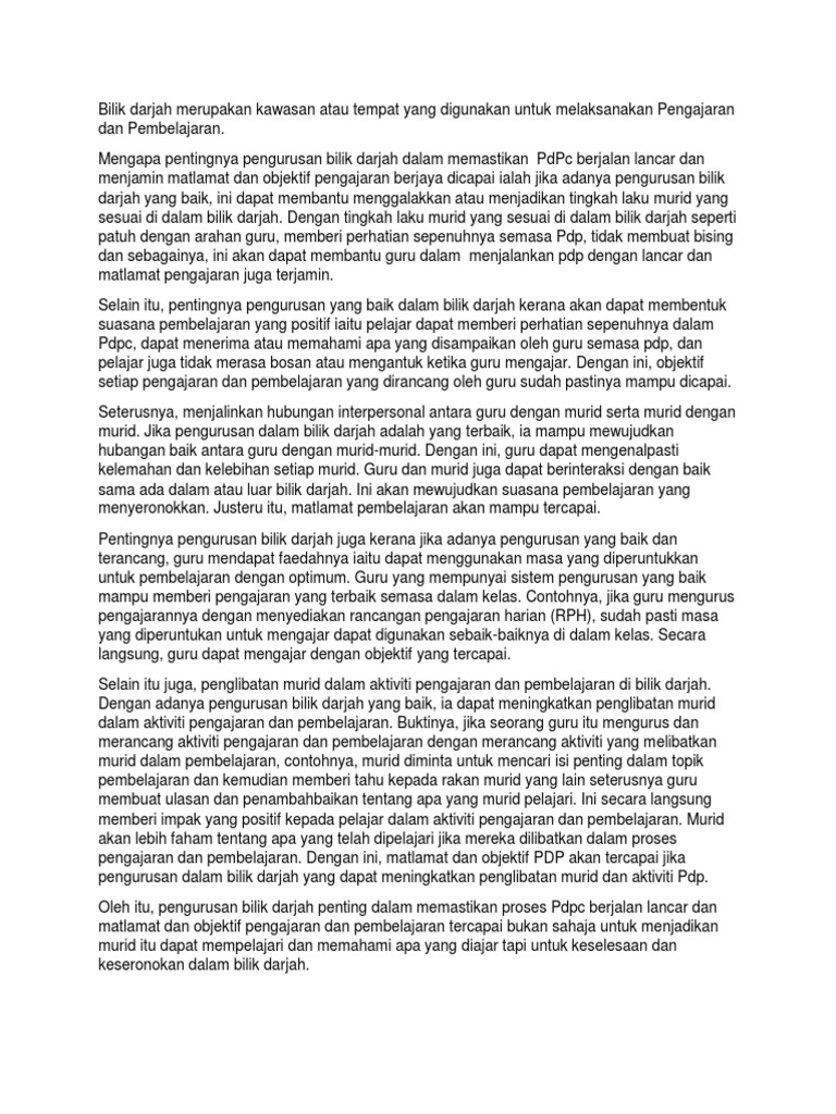 Kepentingan Pengurusan Bilik Darjah Pdf